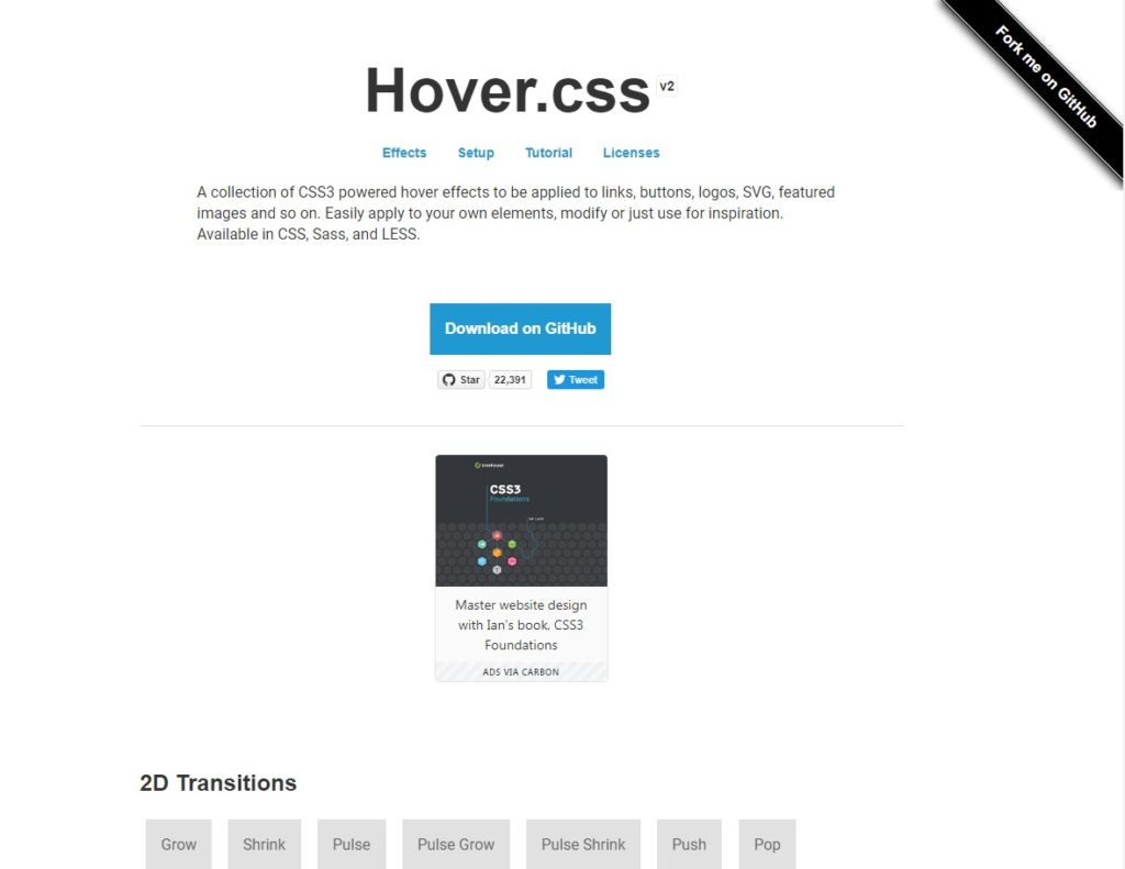 Hover эффекты CSS Странно, но мало, где пишут об этой полезной библиотеке, поэтому исправляю эту ситуацию. Hover.css - это бесплатная коллекция CSS3-эффектов при наведении, применяемых к ссылкам, кнопкам, логотипам, SVG, изображениям и т. д. Легко применяется к элементам и доступна в CSS, Sass Читать далее