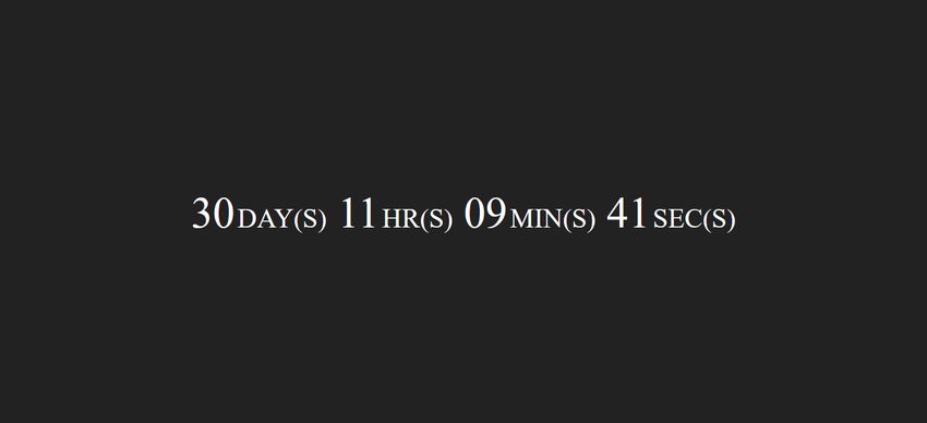 Вот как выглядит таймер обратного отсчета с использованием вышеуказанного CSS. Когда таймер работает, он показывает дни, часы, минуты и секунды:
