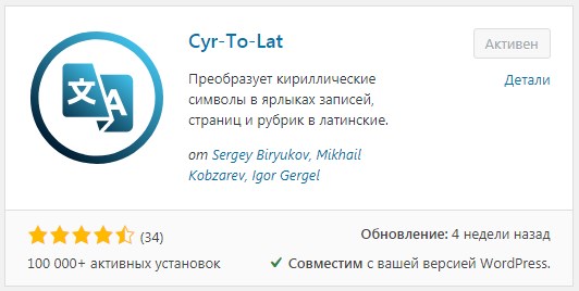 Устанавливаем плагин Cyr-To-Lat и активируем. Больше ничего не требуется. Выгодный магазин электроники Теперь при сохранении записей и страниц их ссылки автоматически будут преобразованы в транслит.